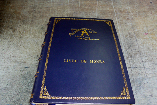 Efectuamos Livros de Honra para instituições públicas e privadas, com a possibilidade de gravação a dourado do logótipo da entidade. Temos várias opções de formato e materiais a aplicar (capas em pele, guardas pintadas,, entre outras, são algumas das opções.